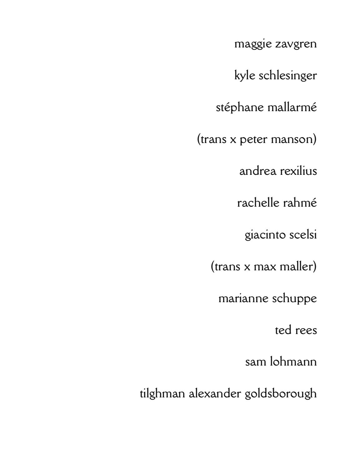 LUIGI TEN CO N.3 / SUMMER 2023 / Third issue of the quarterly mag featuring work from MAGGIE ZAVGREN / KYLE SCHLESINGER / STÉPHANE MALLARMÉ translated x PETER MANSON / ANDREA REXILIUS / RACHELLE RAHMÉ / GIACINTO SCELSI translated x MAX MALLER / MARIANNE SCHUPPE / TED REES / SAM LOHMANN / TILGHMAN ALEXANDER GOLDSBOROUGH / FRONT & BACK COVER ART X SCOTT MOU