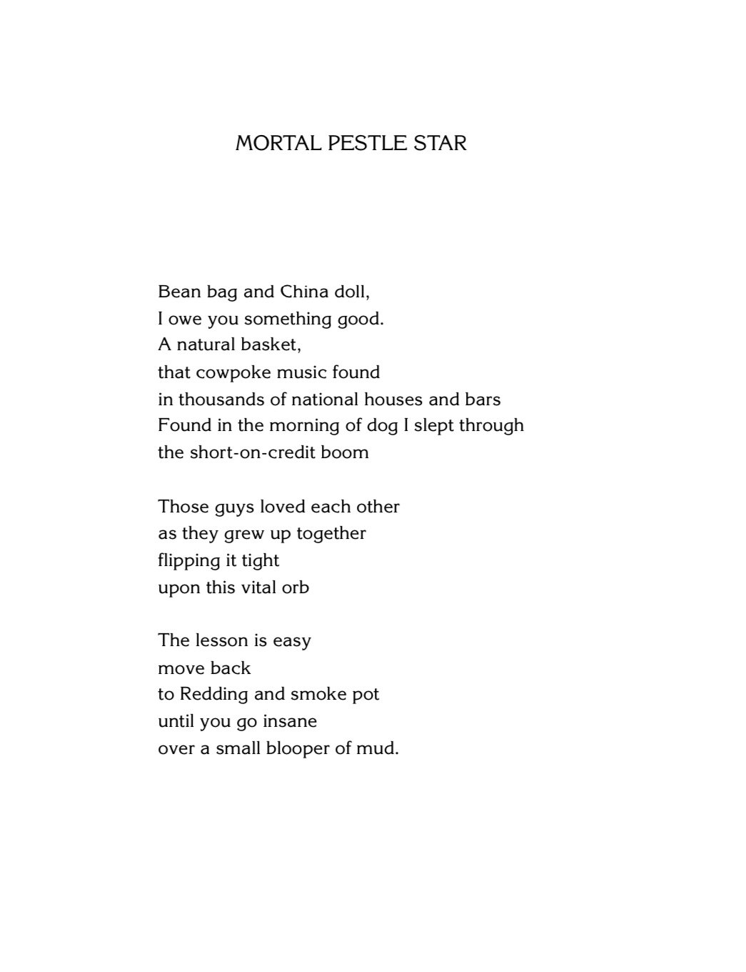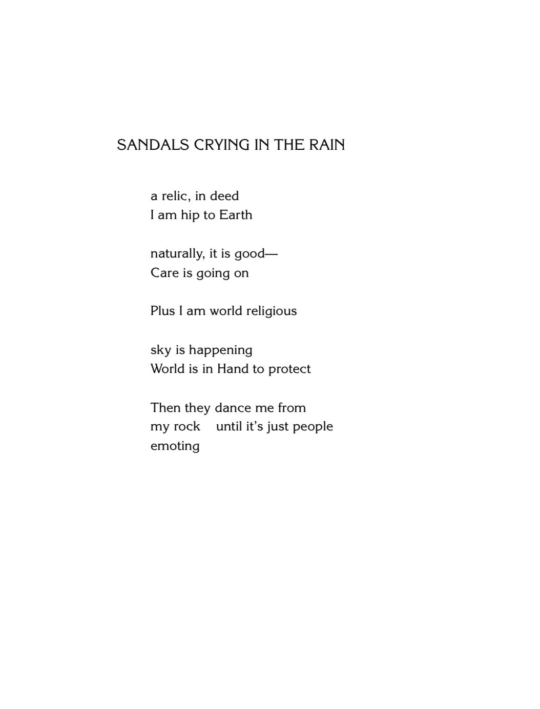 “Your Free!” continues to mostly take a look at contemporary Northern California, its fringe environs and inhabitants. Full of poems that could be transmissions from the community bulletin board of your local natural foods co-op, or which sift through the post Age-of-Aquarian spiritual detritus our boomer forbears have left us to deal with. While reading like a collection that could of come out of the Bolinas poetry scene of the 1970s, Katter’s nevertheless very modern vision turns a jaundiced yet affectionate eye onto youth on the loose at the end of the Anthropocene.