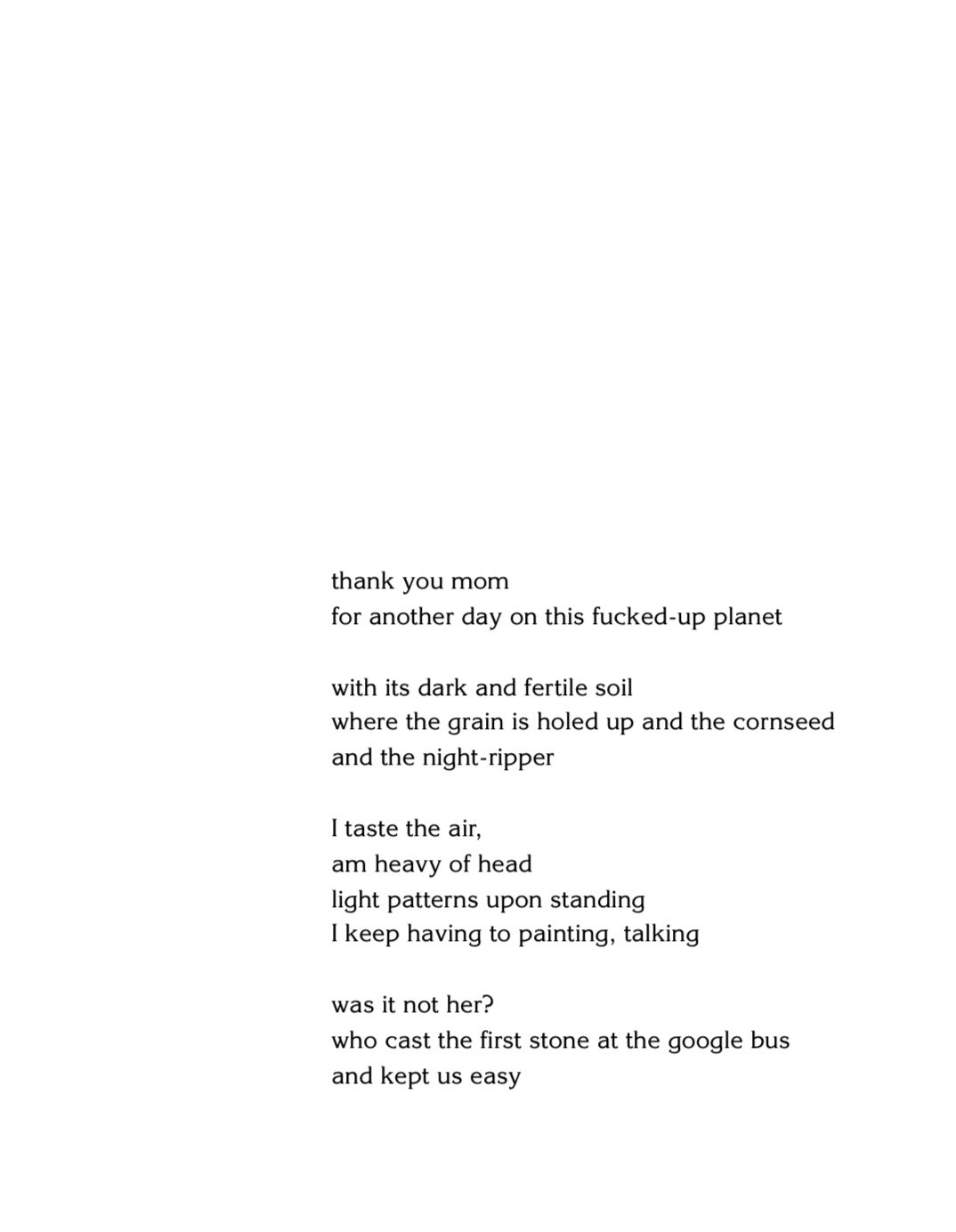 Wry n.11 / “Your Free!” is the third collection of writing from young California based artist & poet, Mac Katter. His earlier two self-published works are amongst my favorite chapbooks of the last half dozen years or so; “Pots” (2017), which compiles a series of works & images originally distributed via Craigslist postings, and “Grass Valley” (2018), a super funny and occasionally disturbing portrait-of-place via suite-of-poems based off area police blotters which almost reads like some sort of Northern Californian poetic burn-out version of Thomas Bernhard’s “The Voice Imitator”.